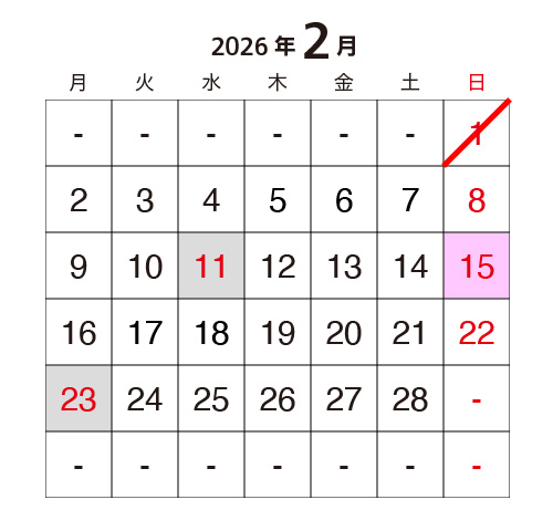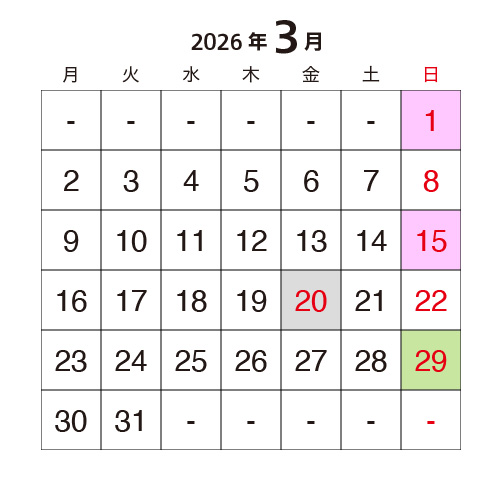 この他に臨時休館となる日もございますので、詳細はお電話でご確認ください。