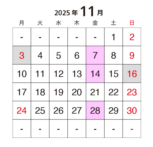 ※緑色の日程は振替日となります。ご入会のタイミングによってはこの日の参加時に追加料金が発生します。詳細はお問い合わせください。