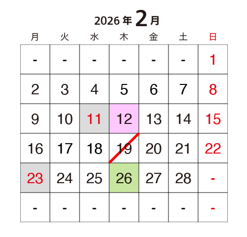 ※緑色の日程は振替日となります。ご入会のタイミングによってはこの日の参加時に追加料金が発生します。詳細はお問い合わせください。
