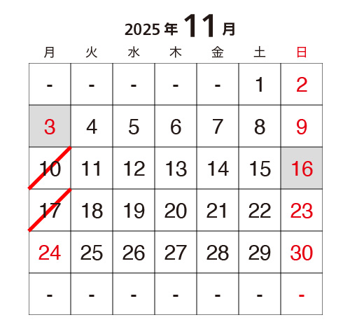 ※緑色の日程は振替日となります。ご入会のタイミングによってはこの日の参加時に追加料金が発生します。詳細はお問い合わせください。