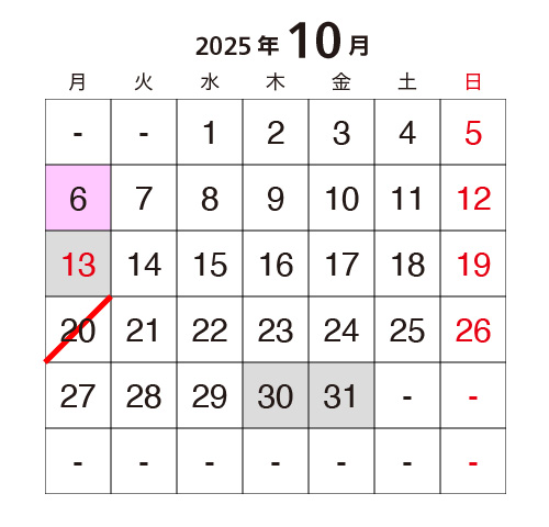 ※緑色の日程は振替日となります。ご入会のタイミングによってはこの日の参加時に追加料金が発生します。詳細はお問い合わせください。