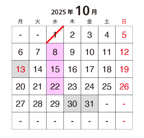 ※緑色の日程は振替日となります。ご入会のタイミングによってはこの日の参加時に追加料金が発生します。詳細はお問い合わせください。